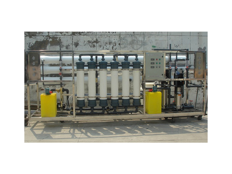 流程:增壓泵--(多介質過濾器(qì))--全自(zì)動超濾--阻垢--高(gāo)壓泵--一級反滲透--(PH調節)--二級高(gāo)壓泵--二級反滲透--産水(shuǐ)