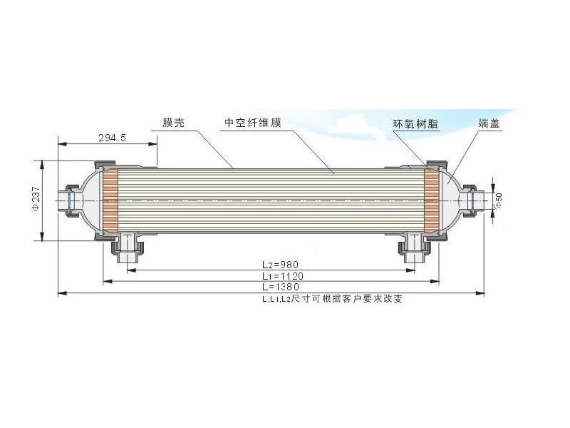 8040膜殼一體(tǐ),标準8寸超濾膜!性價比高(gāo),總長(cháng)1380mm。